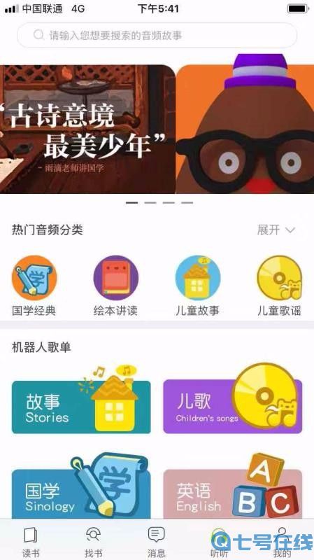 1、进入app以后,在“听听”界面就可以开始为孩子寻找绘本内容了