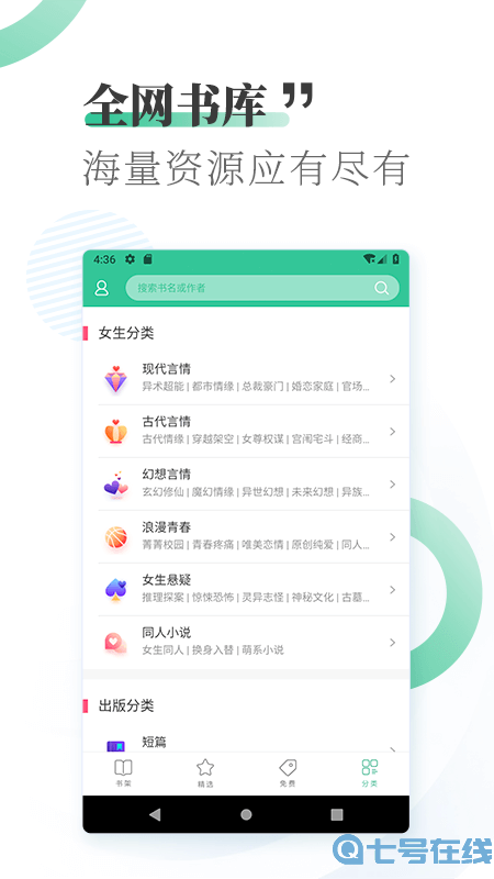 4、在“分类”界面,选择自己感兴趣的小说分类