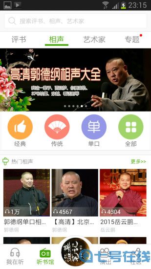 魔王听书是一款专门针对相声和评书的免费移动有声阅读软件,我们这里有海量高清音质的相声和评书,内容全面完整,是相声评书迷的首选听书利器;评书内容涵盖了著名评书表演艺术家单田芳、袁阔成、刘兰芳、田连元、连丽如、王玥波等大家的作品,新派评书海贼王、斗破苍穹、盗墓笔记魔王听书也进行了收录;相声内容全面收录了郭德纲、岳云鹏、马三立、刘宝瑞、侯宝林、马季、马志明、姜昆、曹云金、嘻哈包袱铺等著名相声大师、演员和团体的作品;魔王听书分为四大功能特色,分别为听书馆、我在听、演出和社区。
