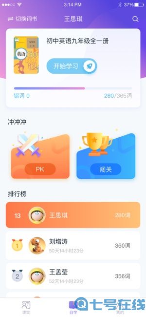 在APP中可以与更多的学习好友进单词PK,一起学习一起进步;