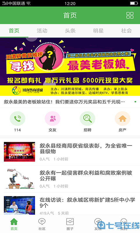 首页:里面包含热门资讯、活动等信息,可以随便查看;