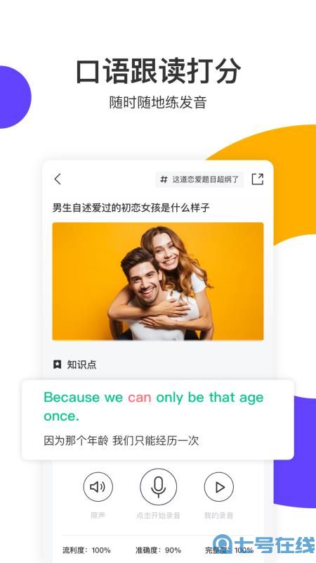 口语练习打分,不仅能跟读句子还能为你的英语发音打出分数;