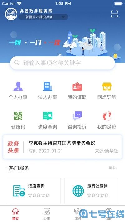 兵政通app是新疆生产建设兵团专门为广大民众打造的政务综合服务平台,用户可以使用这款软件浏览最新的政务动态,同时涵盖了个人办事、法人办事、证照办理、健康码打卡等功能,丰富公众政务服务体验,实现多渠道服务。政务服务智能终端由互联网政务服务门户统一提供服务接口,供各种渠道调用,实现数据同源。更方便的服务于公众。