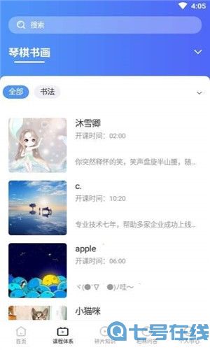 3、涵盖生活的方法面面,这里有琴棋书画,义务教育学习的相关课程,还有名师线上直播课程。