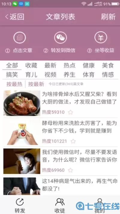 这里文章每天都在更新,可以自由线上进行发布文章转发赚取收益。《神龙资讯提现版》包括了很多旗下大量的兼职转发任务,以及各大网站的资讯信息,你还可以邀请好友领取其他任务赚取奖励。