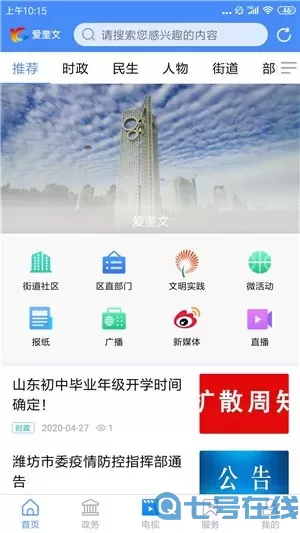 由奎文区融媒体中心运营,设置街道社区、区直部门、文明实践、微活动等栏目
