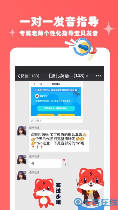 与同班同学在线上互动,给同学们的学习作品点赞分享,让宝贝认识更多的小朋友,在更多的交流互动中学习和成长。还可以在排行榜看到自己的排名,让宝贝的学习更有成就感。