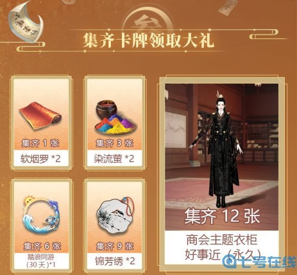 自4月29日至5月20日,天机阁还特别为少侠们准备了“商会百宝箱”H5活动,通过完成每日分享好友、登录游戏等任务就能获得抽取卡牌的机会,不仅可以与好友交换多余卡牌,分享界面邀请好友助力还可获得兑换任意卡片的机会哦~集齐卡牌即可获得永久商会衣柜外观“好事近”,还有软烟罗、染流萤、锦芳绣、30日头像框等众多道具等你来拿!