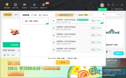 首先,游戏只在韩国地区开放游玩,进入韩服官网下载注册时需要提前准备加速器,这里以雷神加速器为例,在游戏列表中找到”DNF MOBILE”,开启一键加速,然后进入游戏官网;