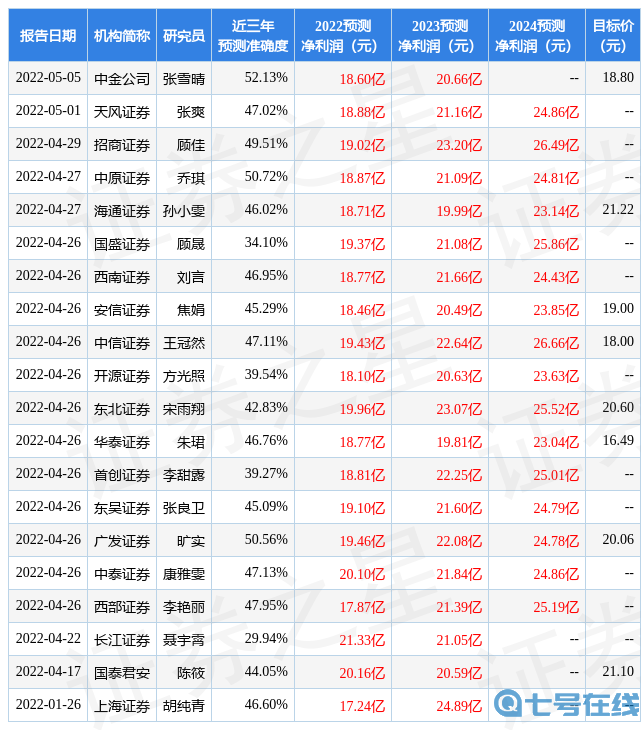 以下是详细的盈利预测信息: