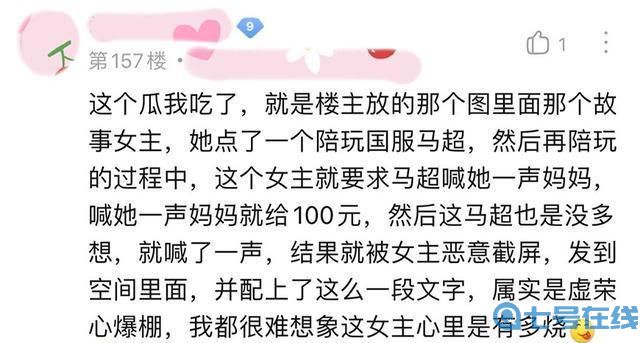 然而,事实并非像女玩家描述的那般,自己和国服马超balabala,还秀空间。