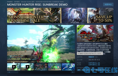 《怪物猎人崛起:曙光》将于6月30日正式上线,今天游戏放出了试玩Demo,玩家们可以先体验部分内容。目前“曙光”试玩Demo在Steam的评价为“特别好评”,好评率83%。