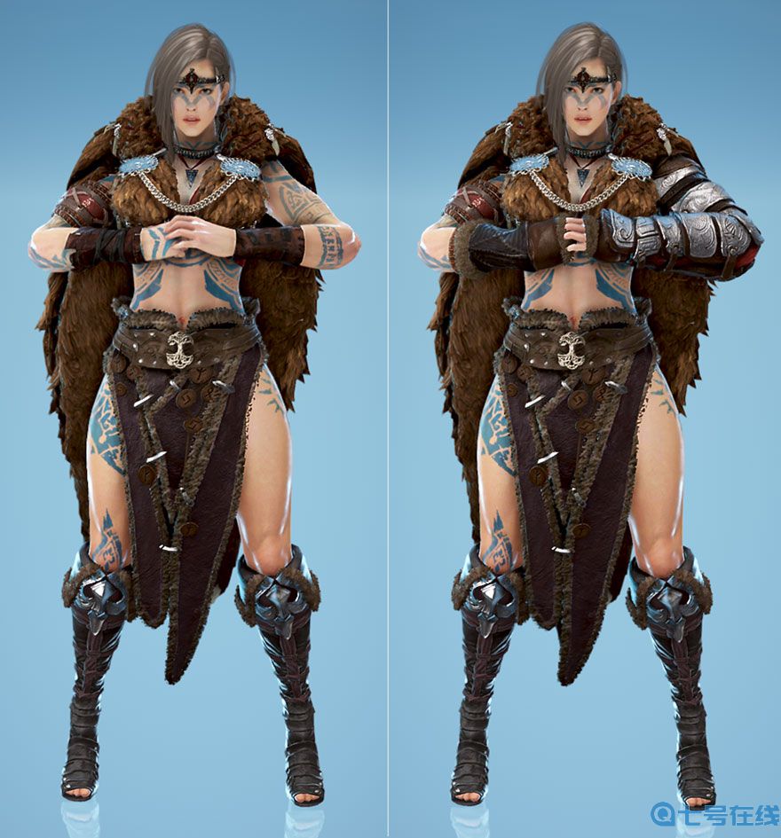 ▲ (左) 套用[守护者]摩勒乌鲁斯盔甲、鞋子的状态 / (右) 套用[守护者]摩勒乌鲁斯盔甲、手套、鞋子的状态