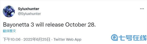 消息来自一个今年2月开通的推特账号Syluxhunter,这个账号在本月25号表示《猎天使魔女3》会在今年10月28日发售。