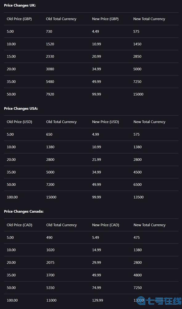 从表中可以看到,以前美服5美元可兑换650点券,调整后4.99美元可兑换575点券,平均涨幅在9.8%左右。再看看其他区服的涨幅,涨幅最高是匈牙利地区,涨幅为23.3%。波兰20%,土耳其19.7%,智利16.3%,罗马尼亚16.0%,新西兰15.9%,拉丁美洲15.7%,日本13.8%,澳大利亚13.3%,捷克11.7%,秘鲁10.2%,墨西哥9.4%,乌拉圭8.9%,巴西8.6%等等。