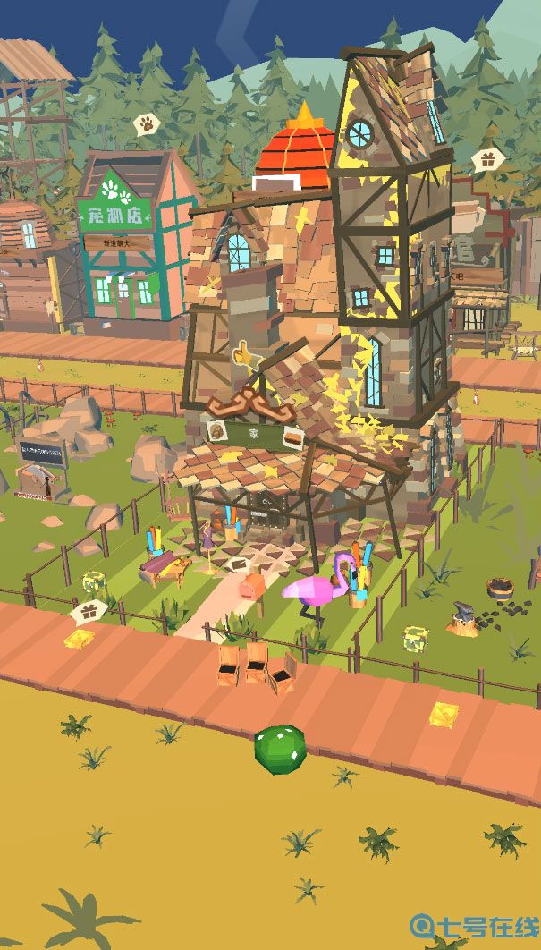 随着旅程的深入,旅行者还会遇见许多小镇。你可以选择就此别过,也可以选择留下定居。当然,在一开始你拥有的仅仅是一间家的雏形,只有不断收集物资升级小屋,才能逐步打造超豪华别墅。
